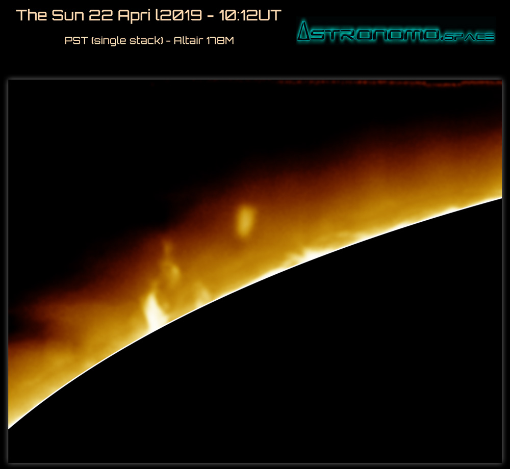 The Sun 22 April 2019 – 12:08UT PST (Single Stack) – Altair 178M The always changing Prominences!