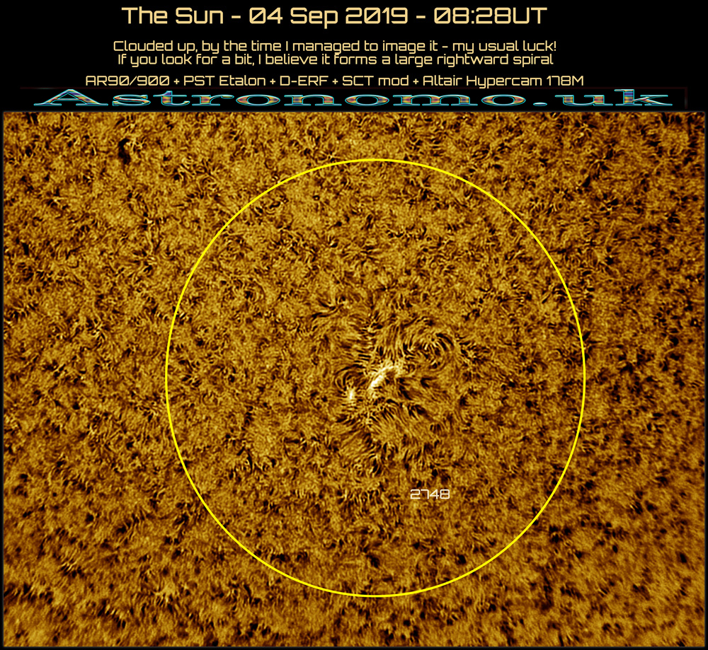 The Sun 08 Sep 2019 – 10:26UT Last image of the day!