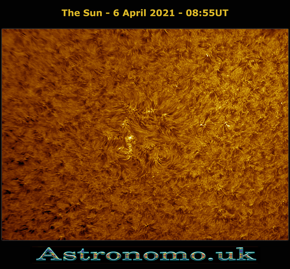The Sun AR3276-79-82 – 14 April 2023 – 08:10UT This area was starting to flare-up – Still testing, so no good image!