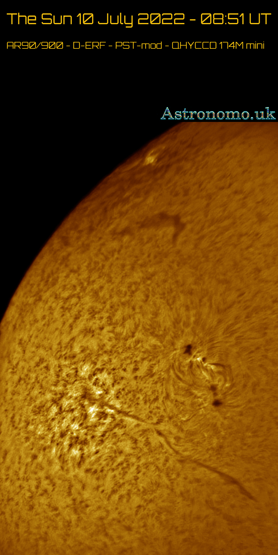 The Sun 10 July 2022 – 08:51 UT AR90/900 – D-ERF – PST-mod – QHYCCD 174M mini