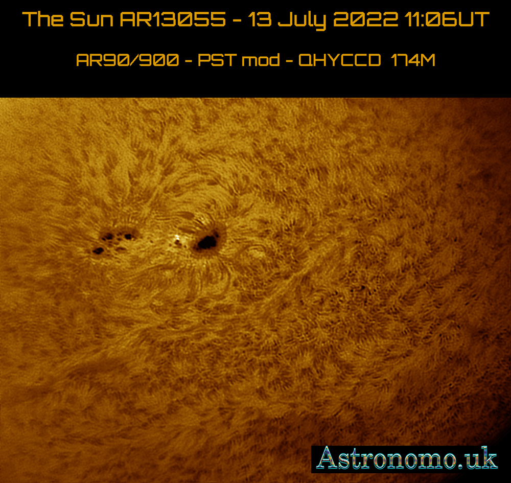 The Sun AR13055 – 13 July 2022 11:06UT AR90/900 – PST mod – QHYCCD 174M