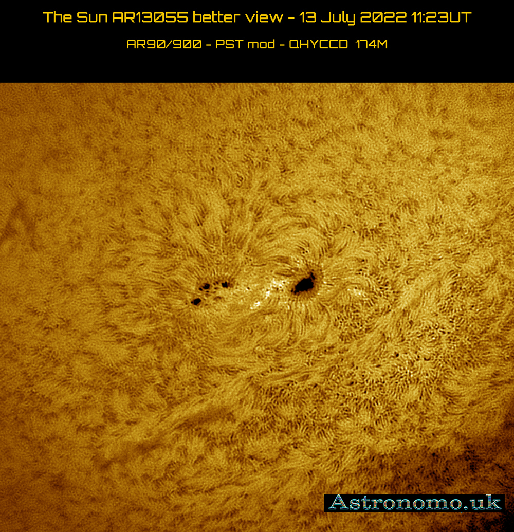The Sun AR13055 better view – 13 July 2022 11:23UT AR90/900 – PST mod – QHYCCD 174M