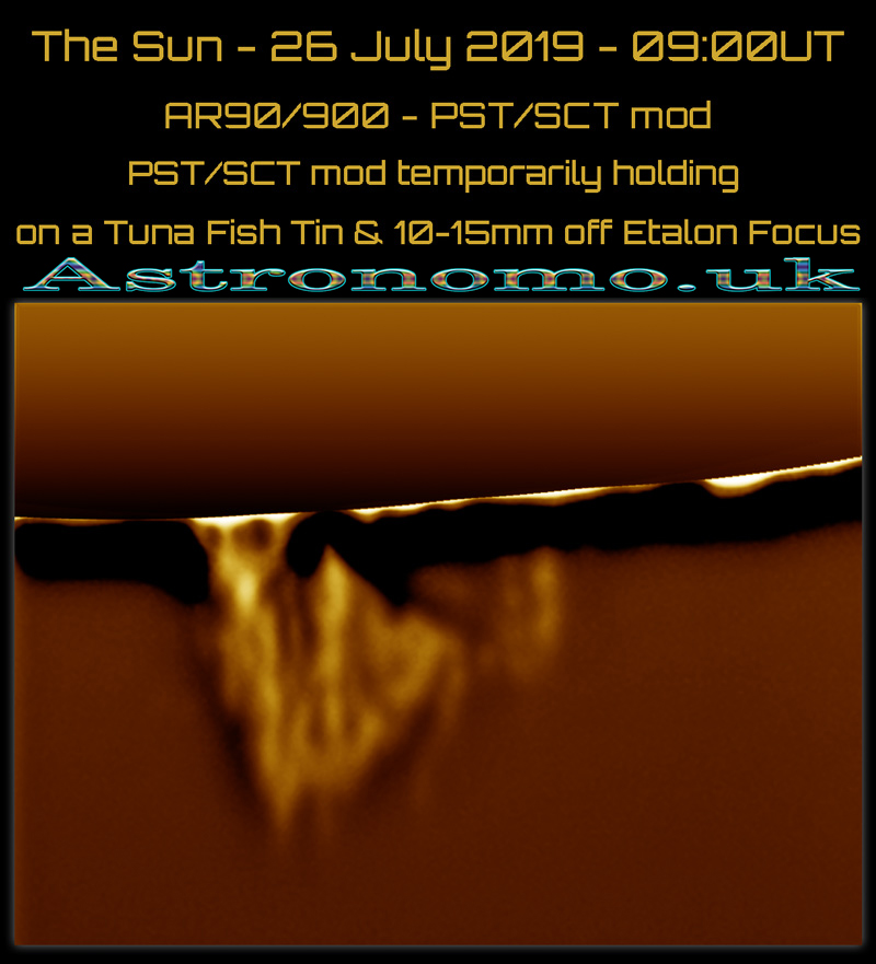 The Sun – 26 July 2019 – 08:45UT AR90/900 + PST/SCT mod 1st TEST – cloudy and only 43 frames! This is 800×600 frame on a Altair 178M
