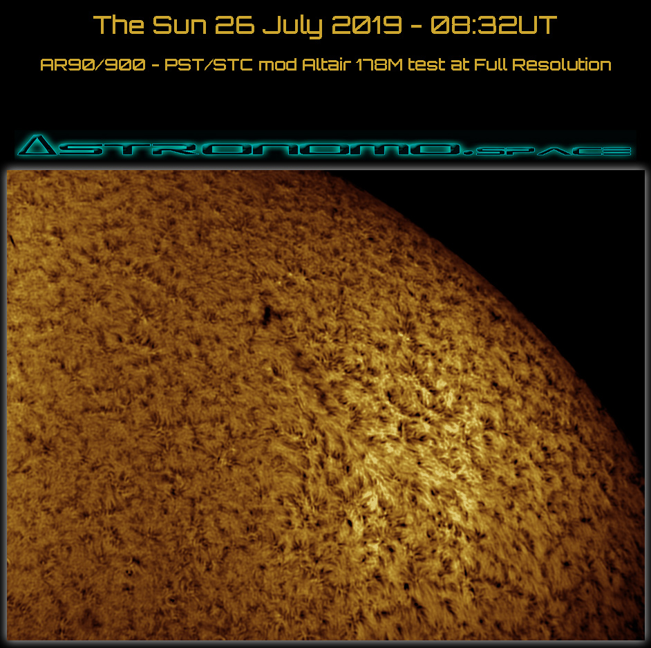 The Sun 26 July 2019 – 08:32UT AR90/900 – PST/STC mod Altair 178M test at Full Resolution